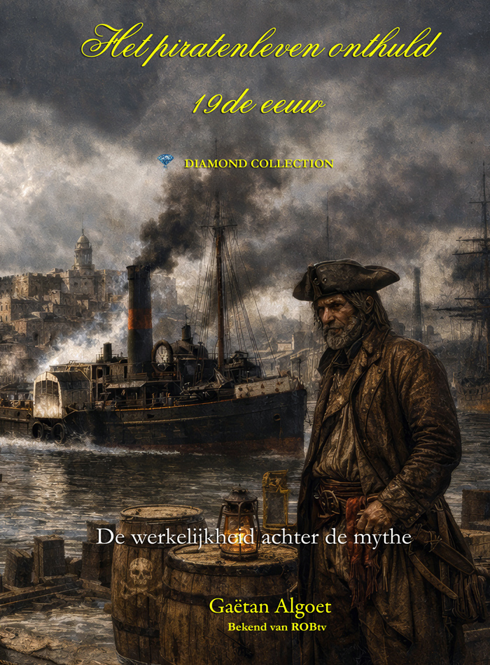 Aan het begin van de 19de eeuw verdwijnt de klassieke piraat uit de Cariben, maar de regio blijft geteisterd door smokkel, geweld en nieuwe vormen van zeeroof. In een wereld die verandert door onafhankelijkheidsstrijd, nieuwe handelsroutes en de groeiende invloed van de Verenigde Staten, verschijnen figuren als Roberto Cofresí, Jean Lafitte en Benito de Soto — de laatste schaduwen van een verdwijnende piratentraditie. Tegelijk vervagen de grenzen tussen feit en verbeelding, doordat processtukken, marinerapporten en literaire fantasie elkaar beginnen te overlappen. Dit boek onderzoekt die overgangsperiode en toont hoe de 19de eeuw het scharnier vormt tussen de historische piraat en de mythische figuur die later zou ontstaan.